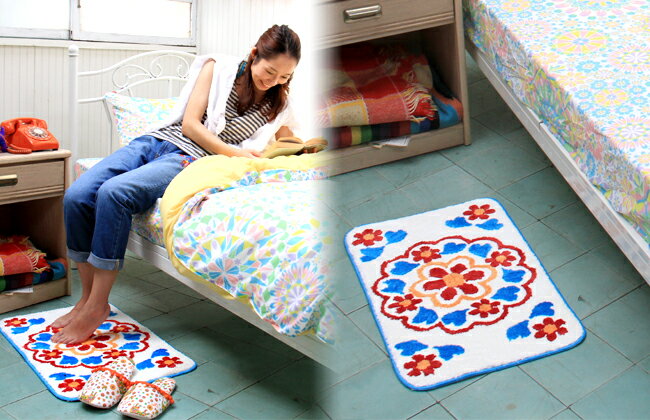 いろんなところに使える、サンクリストバル模様のバスマット!バスマットとして足ふきにするのももちろん、玄関やお部屋に敷くにも丁度いいサイズ♪