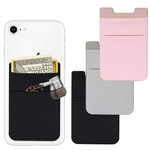 背面ポケット 携帯電話 ステッカーポケット、身元確認証/クレジットカード用のAFUNTA 4個ライクラ接着カードホルダー財布 全機種対応 カード収納付け - ブラック/ピンク/グレー