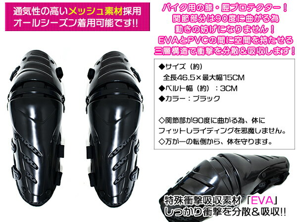 膝・脛 両足用 2点セット プロテクター バイク インラインスケート スノーボード ブラック/黒 【オートバイジャケット オールシーズン着用可能 バイクウェア スノボ—ウェア ウィンタースポーツ ジェイボード モトクロス MTB BMX アウトドア アクロバット 足用 ひざ すね】