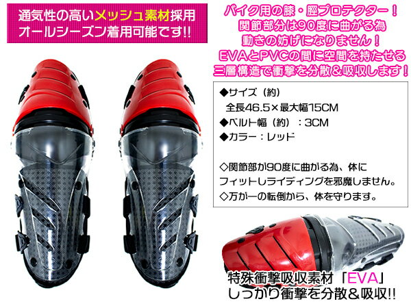 膝・脛 両足用 2点セット プロテクター バイク インラインスケート スノーボード レッド/赤 【オートバイジャケット オールシーズン着用可能 バイクウェア スノボ—ウェア ウィンタースポーツ ジェイボード モトクロス MTB BMX アウトドア アクロバット 足用 ひざ すね】